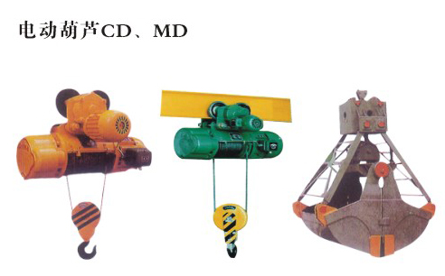 CD型,MD型钢丝绳电动葫芦是一种轻小型起重设备。它可以安装在葫芦单梁,桥式起重机,门式起重机,悬臂起重机上。稍加改动,还可作卷扬用。因此,它是工厂、矿山、港口、仓库、货场、商店等常用的起重设备之一,是提高劳动效率,改善劳动条件的必备机械。